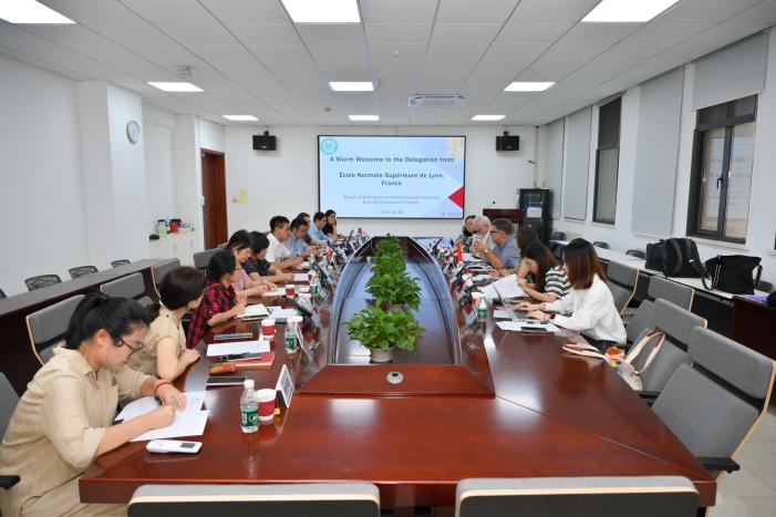 生环学院院长夏建阳热烈欢迎法国高师代表团,并强调了此次交流的重要性,表达了进一步探索合作新路径的期待。Vincent MICHELOT副校长对生环学院的热情接待表示感谢,并简要介绍了里昂高师的基本情况,围绕生态与环境研究方向、实验室基础研究的转型路径及社会科学与研究教育的融合等关键议题展开讨论。此外,双方还就硕士和博士毕业生的就业前景进行了交流,并就中法项目的未来合作方向、中法联合博士项目的申请及学术交流计划等内容进行了深入探讨。