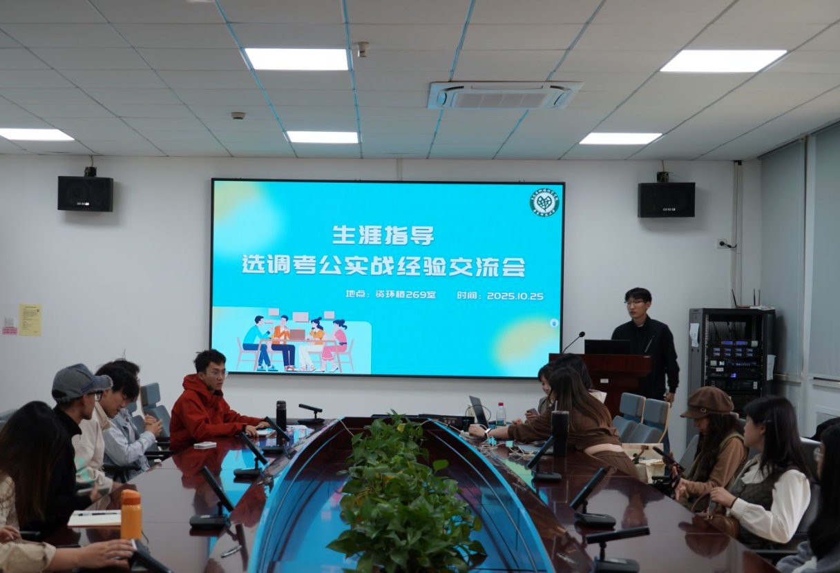 2025年10月25日,生态与环境科学学院于资环楼269室举办选调考公实战经验交流会,本次活动邀请了2023届生态学硕士毕业生包洁欢、2023届环境工程硕士毕业生李梦茁两位优秀校友,为同学们带来一场干货满满的经验分享。学院专职辅导员吴丹和40余名同学参加本次活动,研会生涯部陈博宇担任主持。