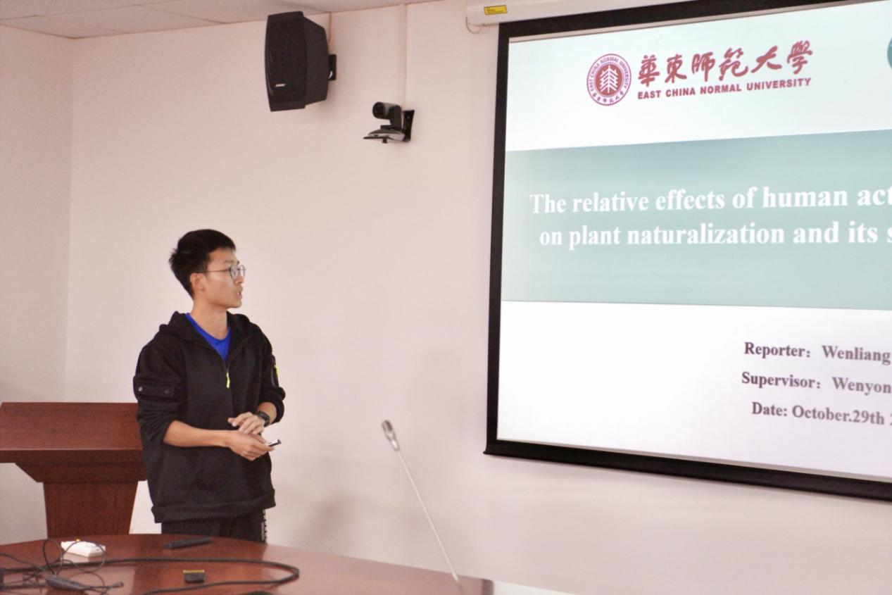 上半场的第一位汇报人是李昕悦同学,她进展快报的题目为《林缘效应对全球地上森林生物量的一致负面影响》,该研究探讨了全球森林破碎化催生的“林缘效应”及对其生物的负面影响。第二位汇报人是赵天旸同学,他汇报的题目为《北移红树林LUE模型构建进展》该研究对浙江红树林开展了长时序的碳汇功能检测,揭示了LUE响应的机制。第三位汇报人是曹世超同学,她汇报的题目为《人工辅助措施对野生水杉种群自然更新的促进作用》,她的研究表明人工辅助下的自然更新措施能够有效缓解水杉种群天然更新的早期限制,具有相关重大意义。