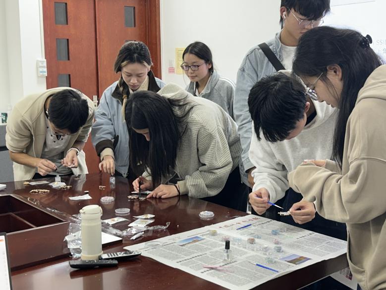为了丰富同学们的课余生活,近距离体验中国传统手工艺的独特魅力,11月7日下午,“指尖拾贝,镶嵌流光”非遗螺钿DIY创意体验活动在资环楼269室开展。三十余名同学齐聚一堂,在螺钿镶嵌的指尖艺术中,共度一段与非遗对话的静谧时光。