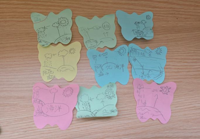 课程最后,在讲师的引导下,同学们在便利贴上绘制了“水循环路线图”,进一步理解了海上内循环、陆地内循环与海陆间循环的过程与意义。同学们在互动中加深了对水资源循环与保护的理解。