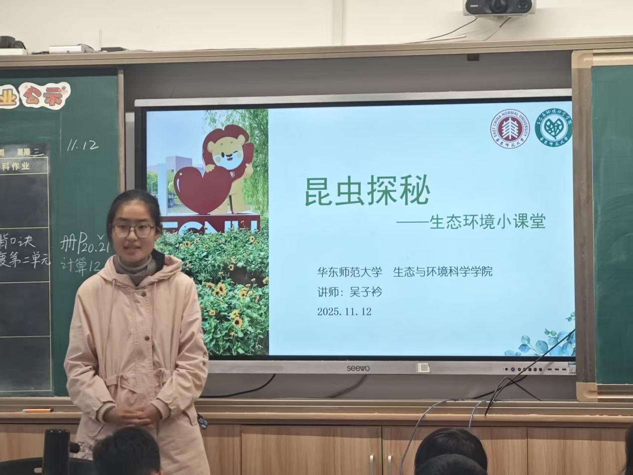 2025年11月11日至12日,生态环境小课堂讲师团前往华东师范大学附属紫竹小学、永德学校开展环教课,本次环教课的主题为“昆虫探秘”,担任本次课程的讲师为狄乐遥、吴子衿、苗怡爽三位同学。