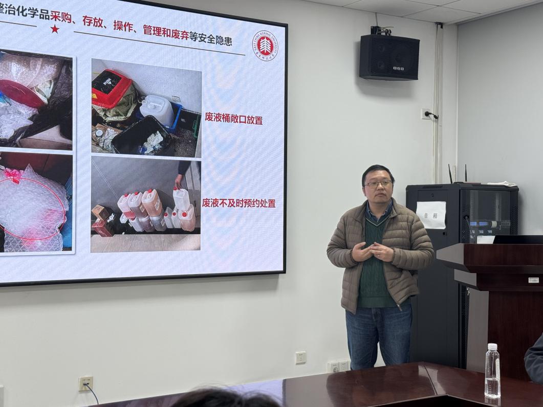 最后,孔利利老师围绕实验室日常操作的实际情况,重点讲解了化学品储存规范、隐患排查方法及日常管理要求,并结合典型案例对常见安全风险进行了梳理分析,为小卫士后续工作的开展提供了具体指导和实用参考。