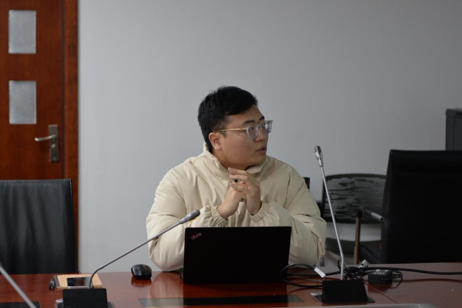 上半场的第一位汇报人是地力努·地力夏提同学,她口头报告的题目为《多通道生物传感技术在新污染物检测中的应用》。该研究探讨了基于生物层干涉原理的多通道生物传感技术,实时、无标记地监测生物分子间的相互作用。该技术的多通道并行检测能力,可同时分析多种目标物,大幅提升检测通量与效率。第二位汇报人是毛琰杰同学,她口头报告的题目为《山西老窑水污染现状、治理挑战与研究进展》。本汇报系统梳理山西老窑水的污染现状与主要挑战,重点分析目前主流治理技术的应用进展,最后结合当前治理中存在的技术、资金、长效性等难点,为山西老窑水的系统治理与区域环境可持续发展提供参考。第三位汇报人是叶枫同学,他口头报告的题目为《光开关原位调控单原子Co-TiO2活化PMS机制增强污染物矿化》。本研究提出了一种光开关调控策略,可原位实现对单原子Co-TiO2催化剂电子转移行为的调节,从而改变过一硫酸盐(PMS)活化过程中活性物种的生成路径,并显著提升污染物的矿化效率。第四位汇报人是蒋聪同学,他口头报告的题目为《果糖强化餐厨垃圾与污泥厌氧共发酵制备中链脂肪酸》。该研究聚焦餐厨垃圾资源化利用,旨在通过添加果糖强化高价值中链脂肪酸的制备。系统探究电子供体类型及浓度、接种比、温度、pH等关键因素的影响,优化得出最优工艺参数,为餐厨垃圾高值化转化提供理论依据。