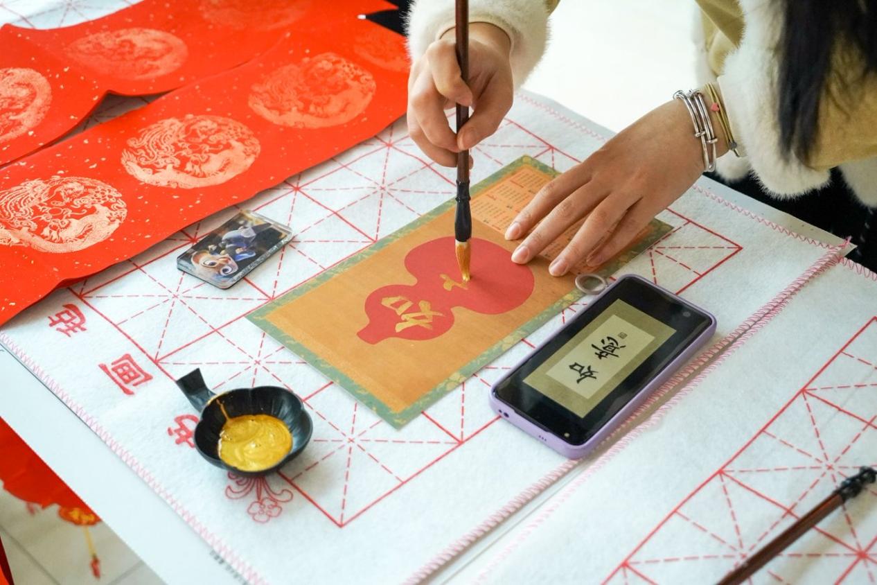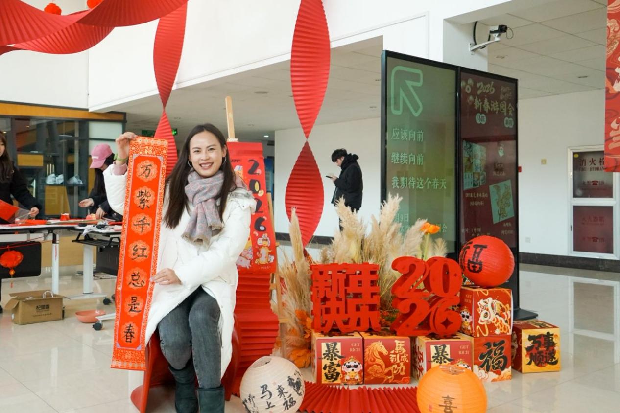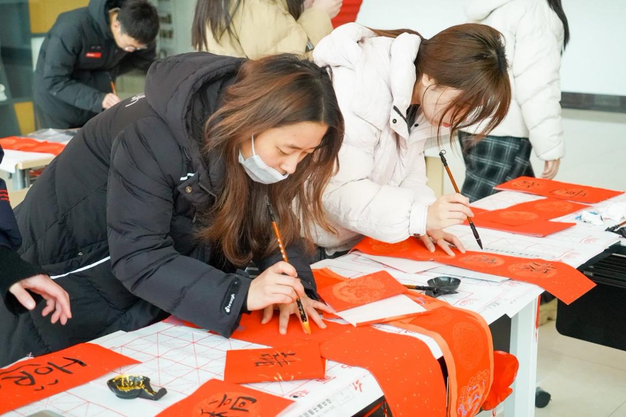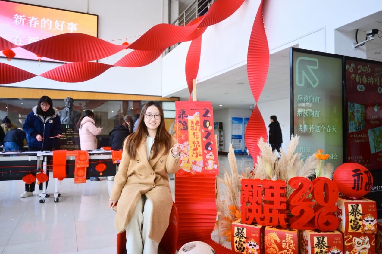对联区红纸铺展、墨香四溢,是现场最具人气的角落。师生们挥毫泼墨,将新春期许凝于笔端。擅长书法的老师笔下,“骏马奋蹄探科研秘境,春风送暖结学术硕果”等春联一气呵成;初学的同学虽笔画稚嫩,却也在一笔一划里写满真诚。各式字体的“福”字、“如意”“安康”等吉祥词跃然纸上,这份亲手书写的祝福,比印刷的春联多了一份心意,也让传统文化的根脉在笔墨间扎根。