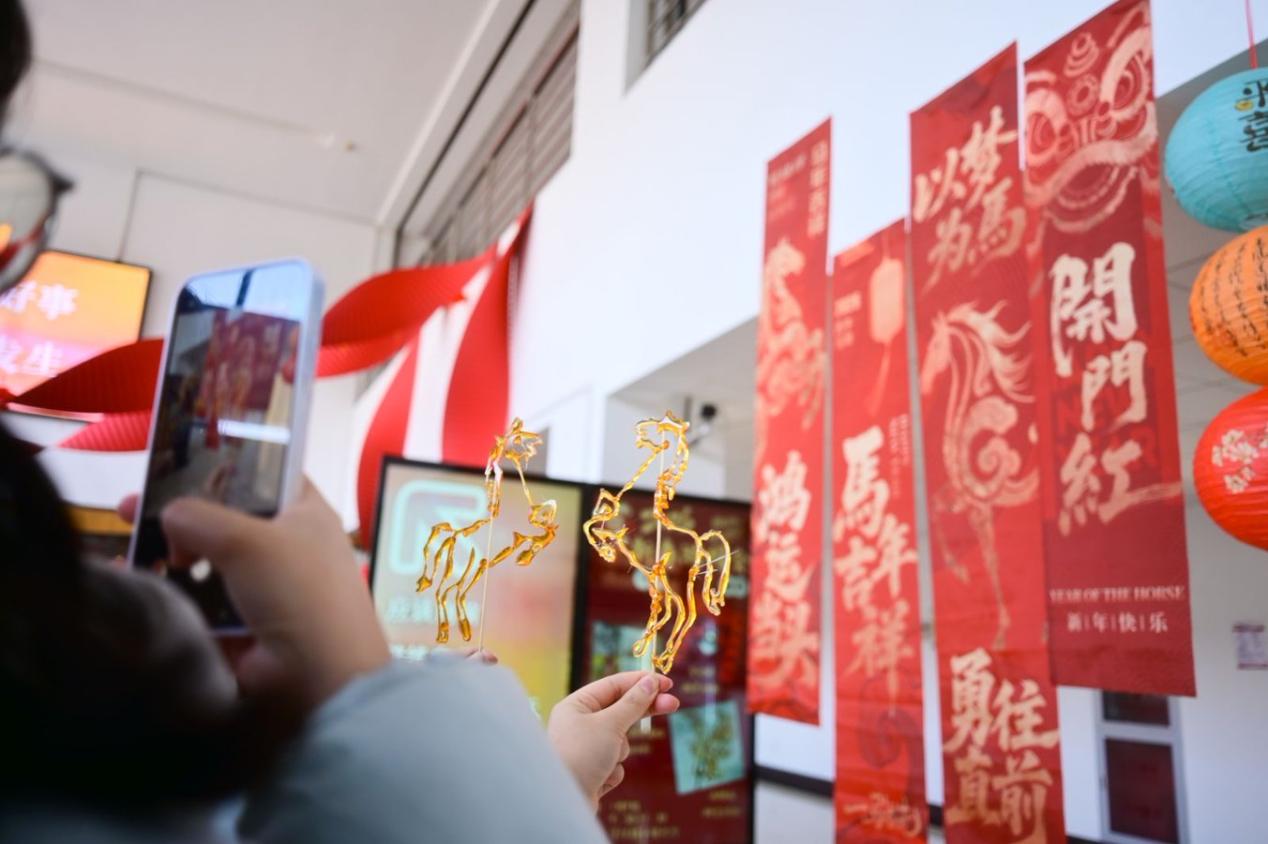 新春游园会上,师生们在亲身体验中感受着传统民俗的魅力和浓浓的年味。笔墨间的意韵、糖画里的甜香、冰箱贴上的巧思,都化作冬日里温暖的记忆,为新年添上一份独特的文化气息。