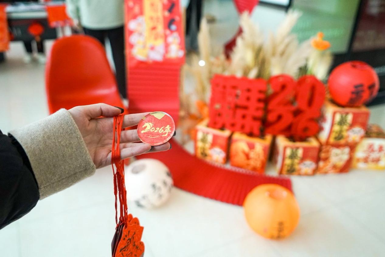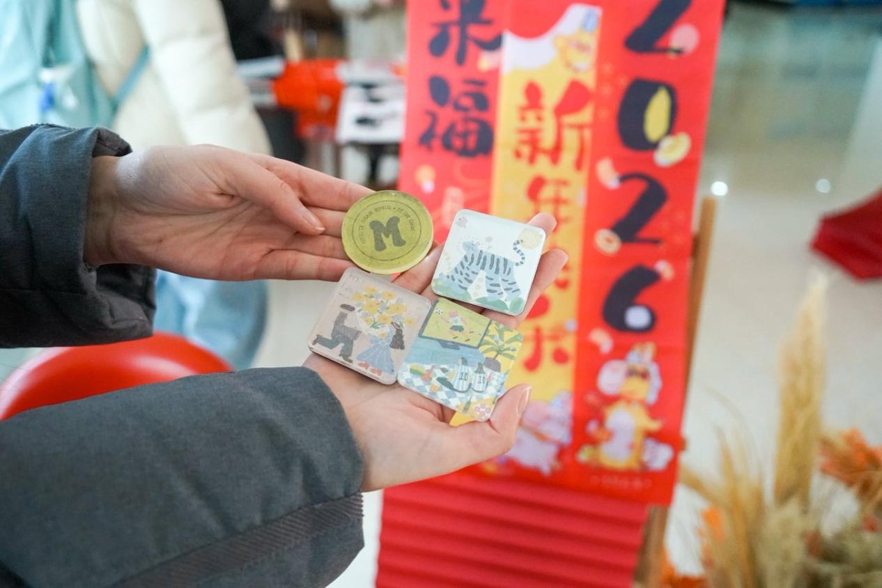 冰箱贴制作区是创意与温情的碰撞场。现场备齐彩纸、磁铁等材料,还贴心提醒大家可自带包装袋、照片等小物件。师生们各展巧思,有人将新春剪纸贴在冰箱贴,有人把校园风景、实验室仪器绘于其上,还有人贴上家人合照,让小物件承载思念与创意。普通材料在巧手下变成独一无二的新春礼物,创作的成就感与温暖,成为这个新春特别的收藏。