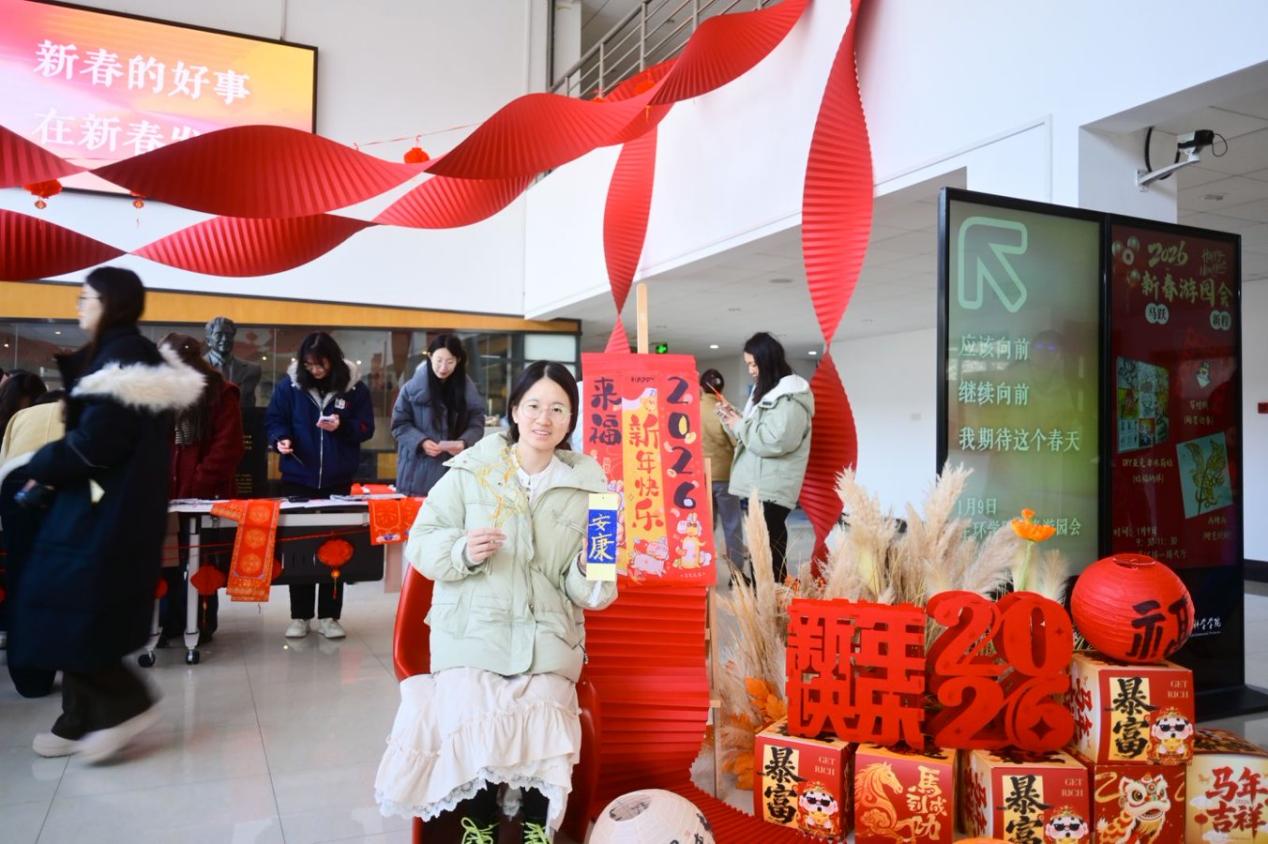 1月9日上午,这场融合传统与创意的新春游园会如约开启。糖画的甜香、笔墨的韵味、冰箱贴的巧思交织在一起,师生们亲手创作、欢笑互动,在热闹氛围中触摸真切的年味,为校园添满了浓浓的节日气息。