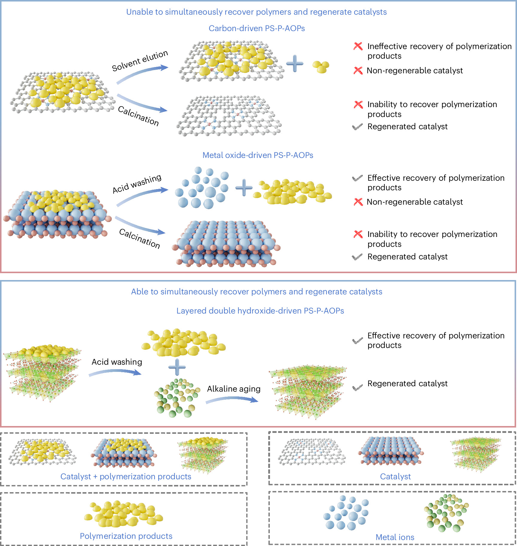 PS-P-AOPs中聚合产物回收与催化剂再生的示意图