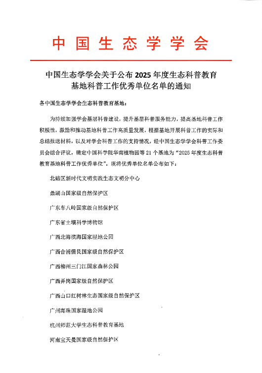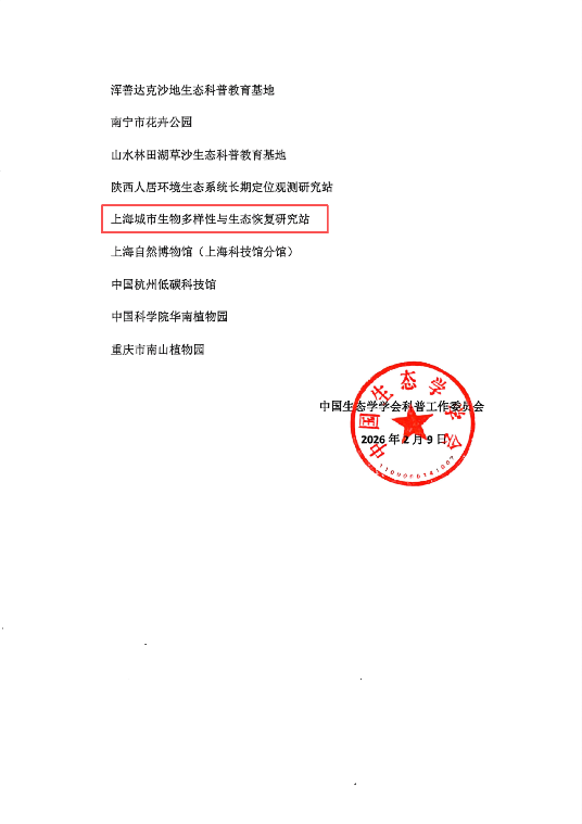 近日,中国生态学学会科普工作委员会公布2025年度生态科普教育基地科普工作优秀单位名单,依托学院建设的上海城市生物多样性与生态恢复研究站成功获评。此次入选是对学院长期深耕生态文明传播与社会服务、扎实开展生态科普工作的高度认可,更是我院积极践行高校社会责任担当的重要体现。