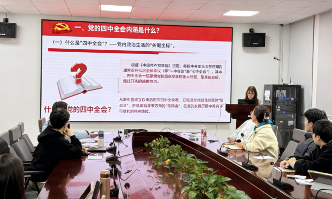 领学结束后,顾佳艳老师结合研究生党员的学习成长实际提出要求,强调青年党员要将学习贯彻二十届四中全会精神作为重要政治任务,做到学深悟透、知行合一,把全会精神融入日常学习与实践中,以青年之姿主动担当时代重任,在实干中彰显党员的先锋模范作用。