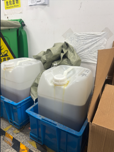 5 | 化学品安全: ①化学品无标签或标识不清 ②液体未配备防漏托盘 ③化学试剂未扫码入库 ④防爆柜未双人双锁 ⑤废液溶剂不超过3/4 |