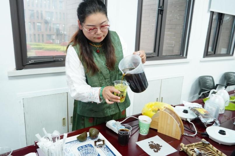 现场实操与品鉴环节将氛围推向高潮。在专业人员的指导下,老师们亲手体验茶咖融合、特色水果入茶、多种食材搭配等创新做法,从咖啡果皮茶、滇红茶美式,到石斛咖啡、罐罐奶咖,依次品鉴多款定制饮品。大家在动手实践中交流心得,在唇齿留香间舒缓疲惫,在轻松互动中增进情谊,沉浸式感受东方茶文化与西方咖啡文化的完美邂逅。