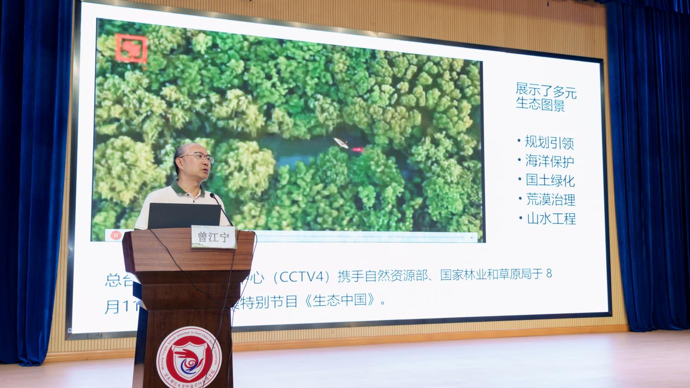 华东师大生态与环境科学学院党委副书记王晶晶在致辞中回顾了中国生态文明大讲坛自2018年发起以来的成果——覆盖全国近20省市、超500万人次受众,已成为连接科研机构与校园的 “科普纽带”。她提到学院近年打造的 “生态环境小课堂”“光启生态环境班” 等品牌活动,呼吁更多社会力量携手,打造 “可听、可看、可感、可参与” 的青少年科普活动,让生态保护理念深入人心。