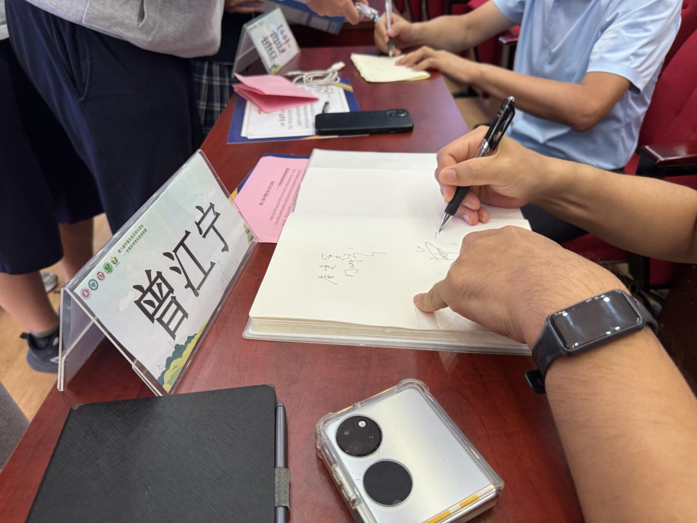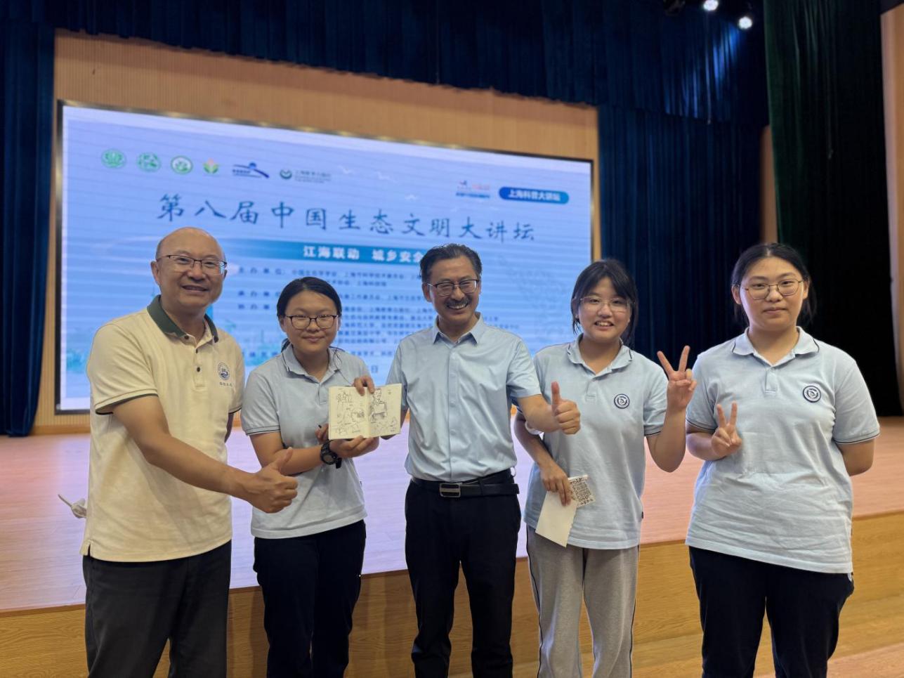 同学们踊跃提问,与专家展开热烈互动。唐建军教授在总结中寄语青少年:“生态认知是生态文明建设的基石,今天的讲座不仅是知识的传递,更是责任的接力。讲座结束后,同学们更是蜂拥上台,有的求签名,有的递上亲手绘制的专家形象手绘,高一学生林之润激动地说:“从来没想过科学家也能这么圈粉!这次我真切感受到了科学的魅力。”