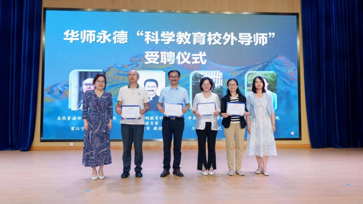 简朴而庄重的“科学教育校外导师”聘任环节,是本次活动的重要一环。严熙校长与费萍华副校长共同为全国生态文明教育科学传播首席专家浙江大学唐建军教授、自然资源部第二海洋研究所曾江宁研究员、华东师大生环学院王晶晶副书记、邓泓副教授四位专家颁发“科学教育校外导师”聘书,指导学校师生开展生态科普与实践研究,培育具有科学精神和生态素养的新一代。