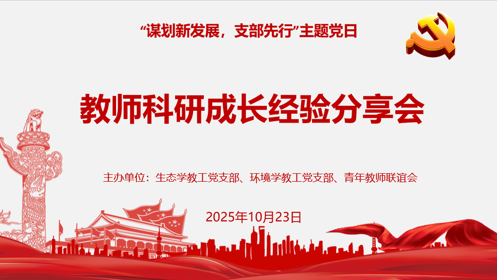 2025年10月23日下午,生态与环境科学学院生态学教工党支部、环境学教工党支部联合学院青年教师联谊会共同举办“谋划新发展,支部先行”教师科研成长经验分享会。活动特邀北京师范大学孙可教授和南京大学周艳莲教授,就科研和基金申请经验、个人成长路径等内容进行分享。生态与环境科学学院副院长关小红教授、教工党支部成员及部分新入职教师等参加了本次活动。活动由生态学教工党支部书记郑泽梅主持。孙可教授先后于2016年和2021年获得国家优秀青年科学基金和国家杰出青年科学基金资助,近年来主要从事生物质炭固碳效应与机制研究。她在报告中结合生物炭长期定位实验的结果,系统介绍了生物炭与秸秆调控微生物和土壤矿物碳泵的土
