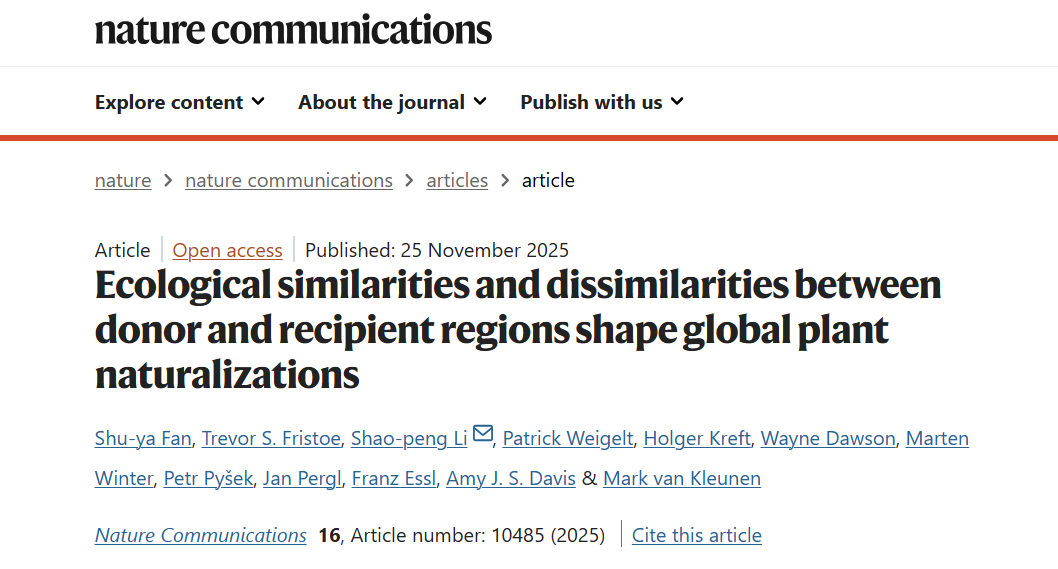 外来物种在全球范围内加速扩张,严重威胁生物多样性、生态安全和人类福祉。弄清外来物种更容易在哪些地区取得成功,是入侵生态学想要回答的核心科学问题,也是开展生物入侵风险评估和预警的前提。长期以来,科学界普遍假设外来物种更容易在生态条件与原产地相似的地区归化成功,这一假设也构成了大多数外来物种分布模型的理论基础。但在全球尺度上,该假设的普适性尚缺乏系统检验,且难以解释外来物种在全球呈现的不均衡分布格局。围绕这一问题,华东师范大学生态与环境科学学院黎绍鹏团队联合多国学者开展了一项全球性研究,通过构建一个多维度的生态距离分析框架,系统评估了原产地与引入地的相似性与差异性如何共同影响外来物种的归化。这一框